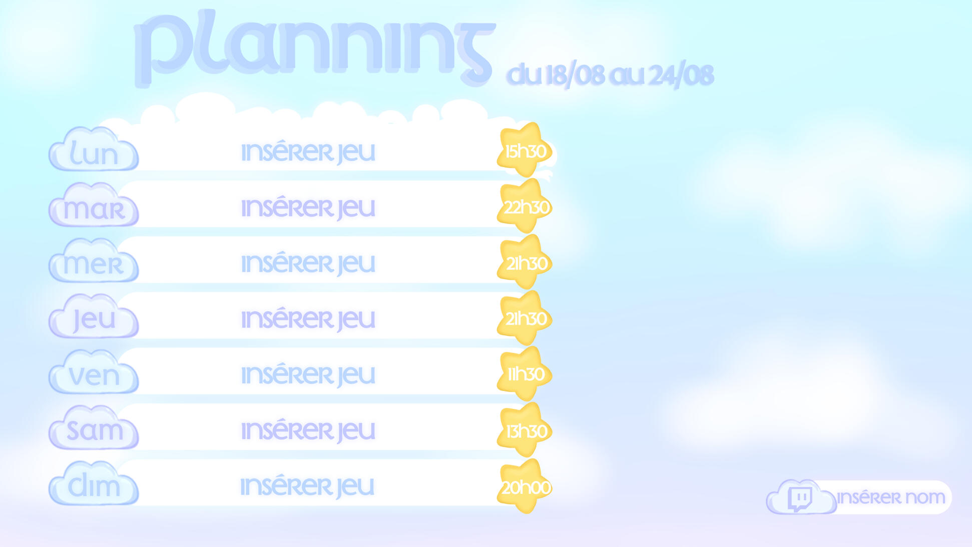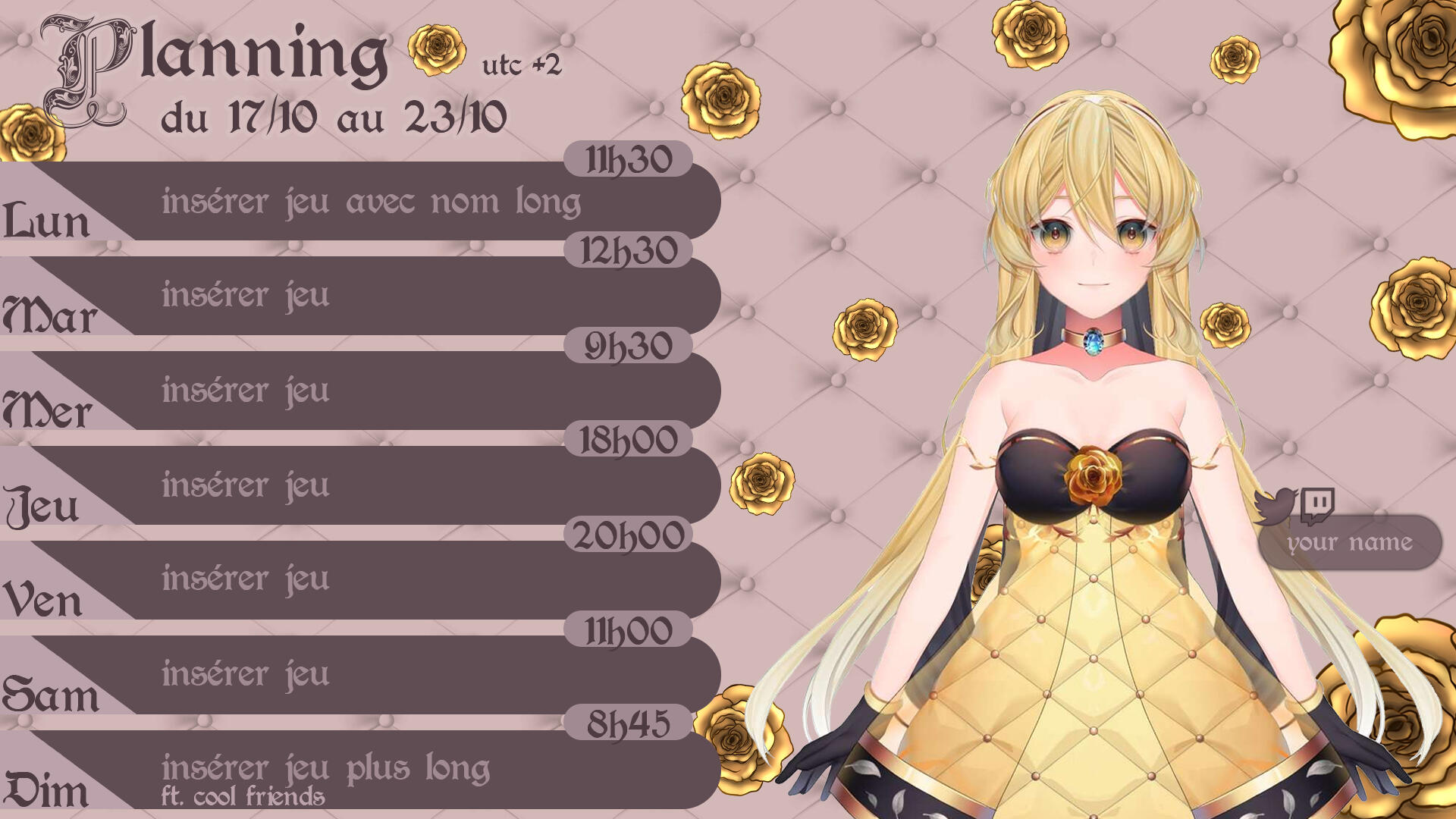 | overlays (starting soon, just chatting, gaming, be right back, ending) | 30€ |