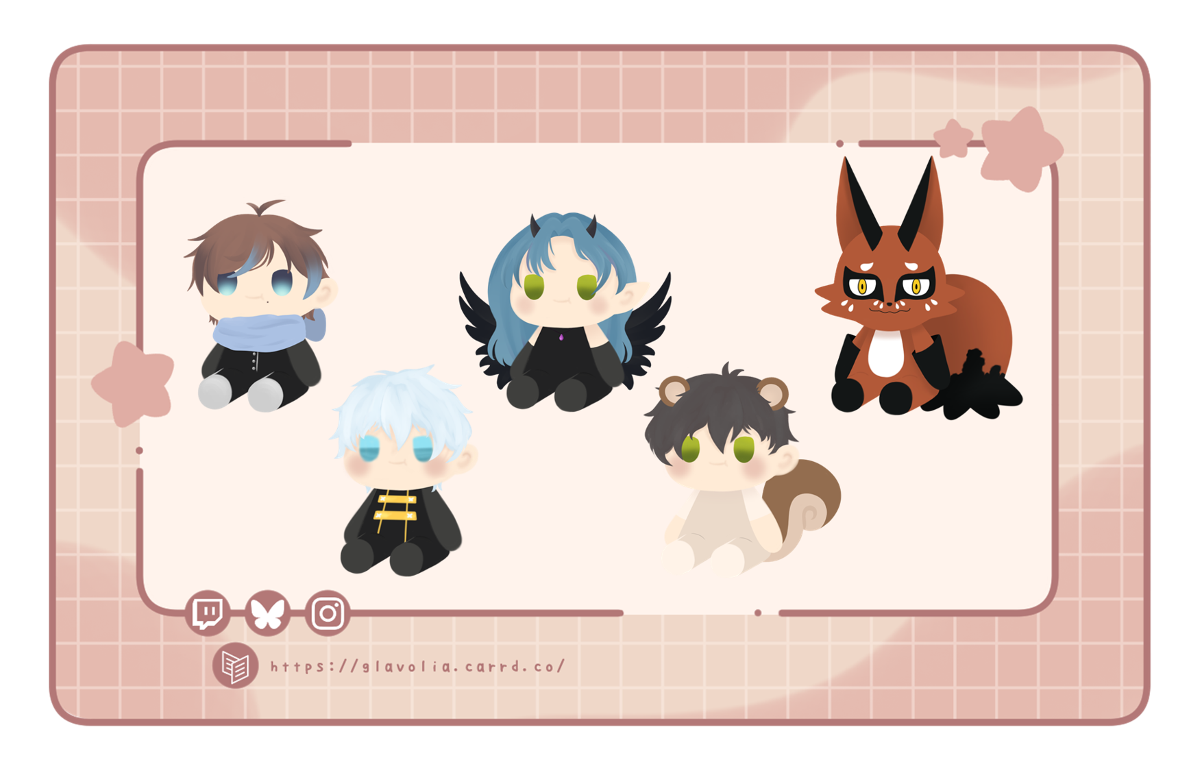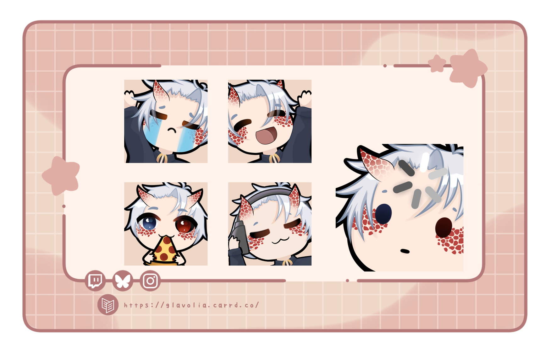 - All prices are stated in euros (€), those are basic prices. Additional fees are not excluded if the commission requires more work, additional files or high complexity of design. Make sure you have a clear idea of what you want before contacting me.- All commissions will be via PayPal invoice only, the payment shall be sent before I start working if I approve the commission. If the amount exceeds 50€, paying half before and the other half when I deliver the commission is a possibility that must be discussed beforehand.- Since I do not want to up my prices, a fee will be added to each commission as PayPal fee. You can find a fee chart at the bottom of the page (example: price 25€, fee 0.90€, I will always pick the lower fee). All other fees are listed in a chart at the bottom of the page.- I only work with VTubers unless I decide otherwise! Every commission is taken through application (via google form).- I do not create character designs, each commissionner must have an existing design.- The art commissioned is for personal use only. You cannot resell it under any forms. Non-commercial use only, unless we agree on it and discuss additional commercial fees.- You must credit me for my work, either in your twitch panels or bio. This can be done by adding my Bluesky username on your profile (example: emotes by @glavolia on Bluesky) or by adding a direct hyperlink to my Bluesky after listing what I created for you (example to copy-paste in your panels: [glavolia]( https://bsky.app/profile/glavolia.bsky.social) : emotes). It is mandatory. If I notice I am not credited, I will ask you to add it. If you refuse in any way after I reach out to you, you will not be able to use my work and you’ll have to remove it from all platforms, not crediting me would be breaching my terms of service.- I will ask for precise and detailed description of what you want. References are welcomed and I shall ask you for as many as I would need. You must be sure of the designs you want and consider every aspect of your order before reaching out to me.- After the payment is received, I will start working on your commission. I shall send sketches and you will have to approve them or ask for adjustments. Once the sketch is approved, I will only allow minor changes in the work process. I will update you on the commission so if any small changes are needed, I can easily work on them. When I declare the work finished no changes will be allowed.- If you require any large changes or lots of small changes after approving the sketch, additional fees may occur.- If a deadline is required, it must be specifically asked for and stated, otherwise only estimated time of delivery will be given.- Rush orders are available for an additional 50% of the base price, you shall warn me if you need the commission to be worked on quickly.- Modifying, redrawing or copying my work without my consent or knowledge is forbidden. If I give my agreement for you to use my work as reference or want them to be changed in any way, you shall reach out to me so I give my permission.- I have the right to share my commission work on my social medias (@glavolia, Bluesky and Instagram) or stream (@glavolia on Twitch) during the creation process unless it has to be kept secret, but you shall tell me about these details beforehand. If you have any special date you want me to respect before posting the work, I will approve those terms.- I am free of using my work in portfolios, and so are you of posting it on social medias as long as I am credited for it.- I have the right to decline any commission requests if I don’t feel comfortable working on them. I also have the right to request removal of any commission that breaches these terms. Uncooperative, unintelligible or indecisive commissioner will result in commission cancellation.- As the artist, I retain full and exclusive rights to the designs I create. You may not claim my work as yours or use it for anything but personal use unless agreed otherwise.- REFUND POLICY:- If I find myself unable to complete the commission for personal reasons, you will receive a complete refund. If you want to cancel the commission before I start working, you will as well receive a complete refund. Once I start working no refund will be possible unless it is due to my personal reasons.- Dissatisfaction of the final product can NOT grant you a refund. As you will be updated through the whole process and be able to ask for modifications and revisions, you are responsible for the end result and therefore cannot obtain a refund.